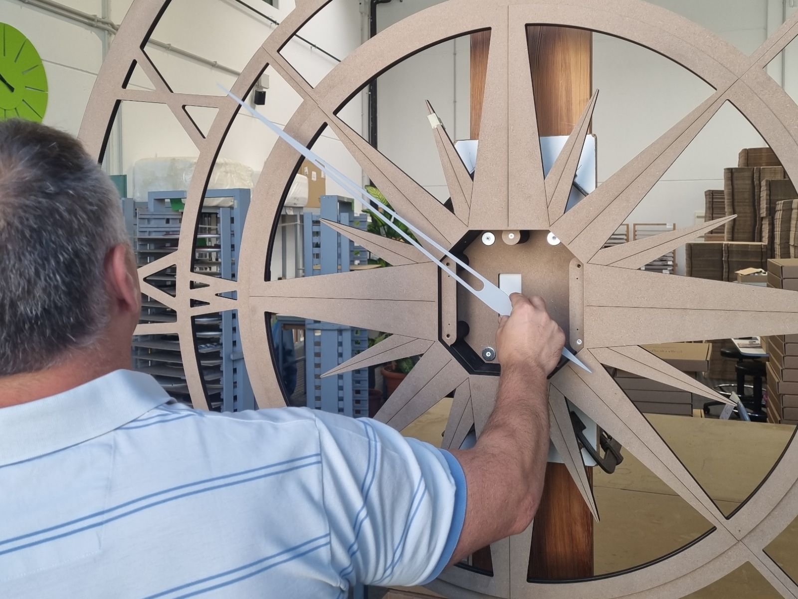 Realizzare un orologio così grande, completamente su misura, a 2000 km di distanza, richiede organizzazione, metodo e tanta cura. Abbiamo costruito tutto nel nostro laboratorio, testato ogni componente, preassemblato il meccanismo, verificato bilanciamento e funzionamento delle lancette alleggerite, progettate per coprire 120 cm di diametro.